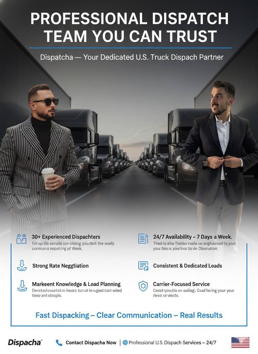 We never touch your load payments. The broker or factoring company pays you directly. We simply send you a separate invoice for our dispatch fee at the end of the week based on the Gross Revenue we booked for you. Complete transparency.